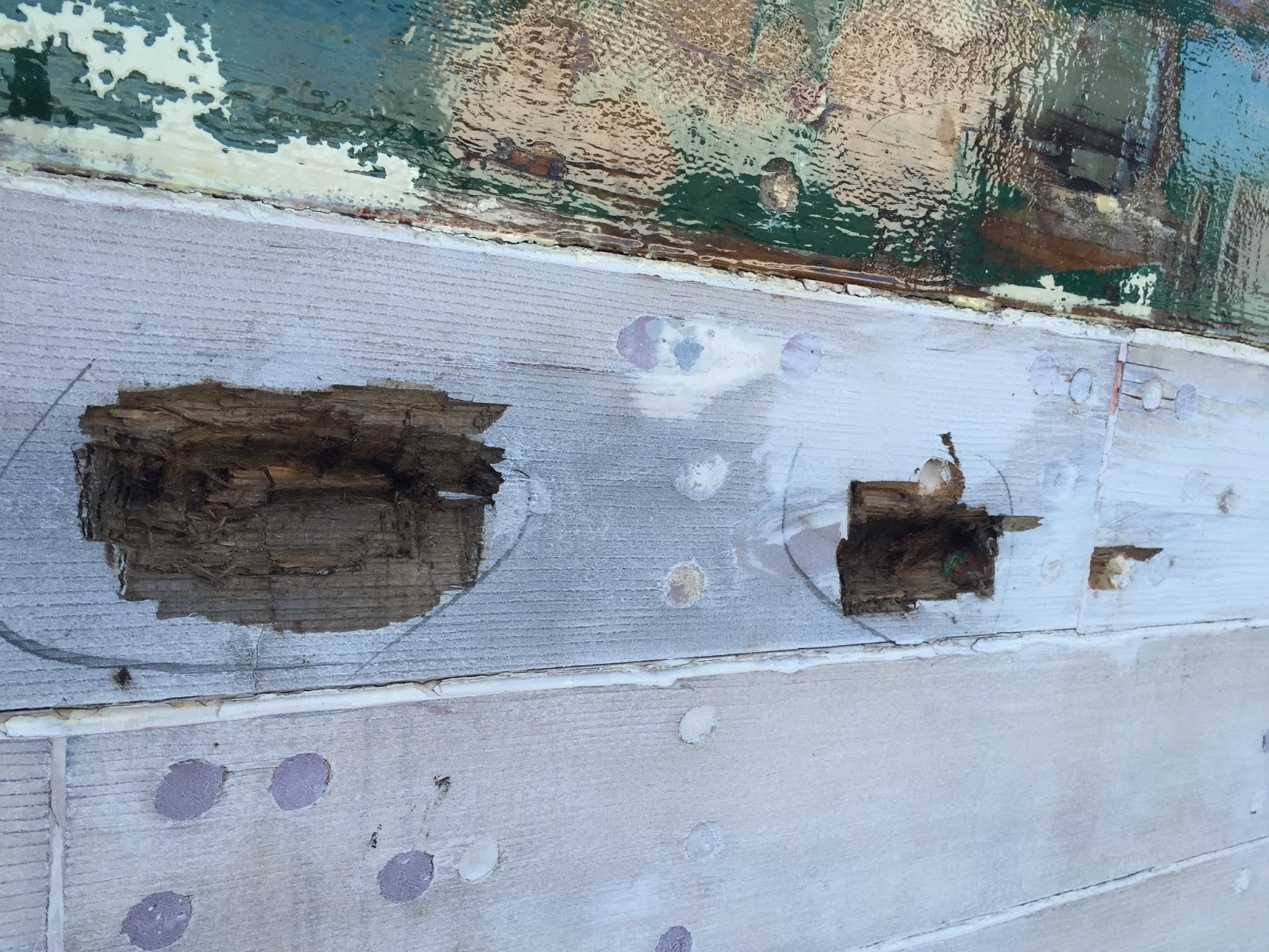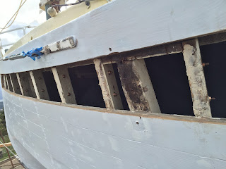 Then they found the deck fiberglass was coming loose, so after the paint was stripped, the deck edges were all glassed......oops, found some iron sickness in a spot or so on the port side.